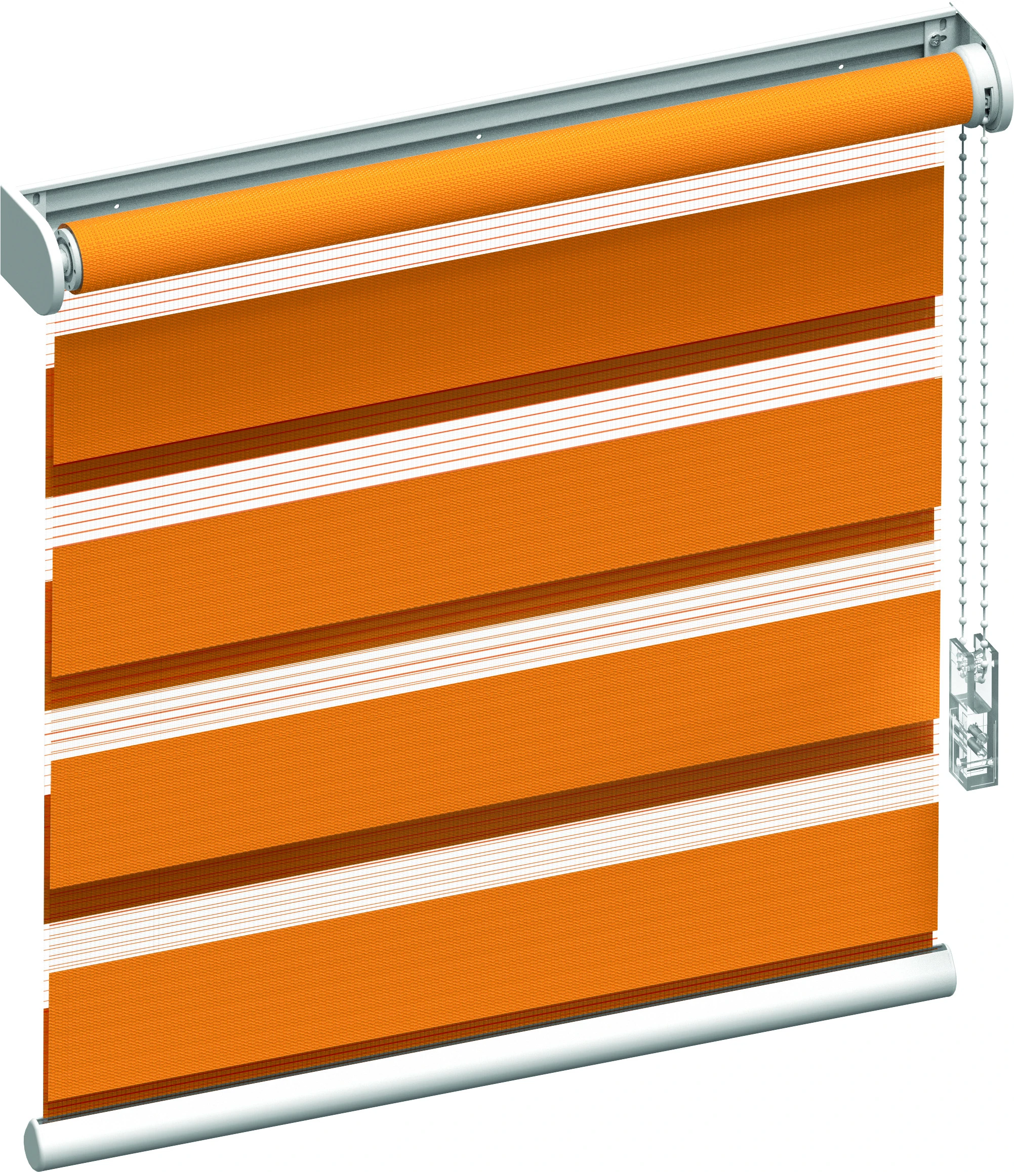 Doppelrollos bestehen aus abwechselnd angeordneten, horizontalen Stoffbahnen. Eine lässt die angenehmen Sonnenstrahlen hindurch, die zweite schützt intensiver. Durch paralleles Verschieben erzielen Sie einen optimalen Verdunkelungseffekt oder Sie dosieren die Lichtmenge so, wie es Ihnen gefällt. Mit dieser Lösung können Sie den Lichteinfall im Innenraum regulieren, ohne den Behang hochziehen zu müssen.